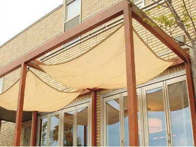 紫外線約90%カット、床面温度も約11℃下げ屋外で快適なティータイムを。そして周りには観葉植物を飾って南国ムードを